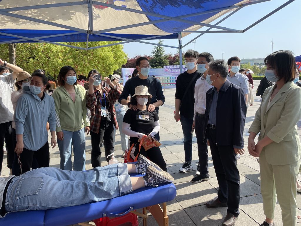 本网讯(英国正版365官方网站 张雨琛)4月10日下午,学校2022年员工社团文化节劳动教育课程宣传推介活动在花津校区南侧体育场外举办,英国正版365官方网站社会体育指导与管理教工党支部和研究生第三党支部全体党员结合“我为师生办实事”主题党日活动,在活动现场为校内员工提供免费运动处方、理疗、按摩、健康咨询等服务。