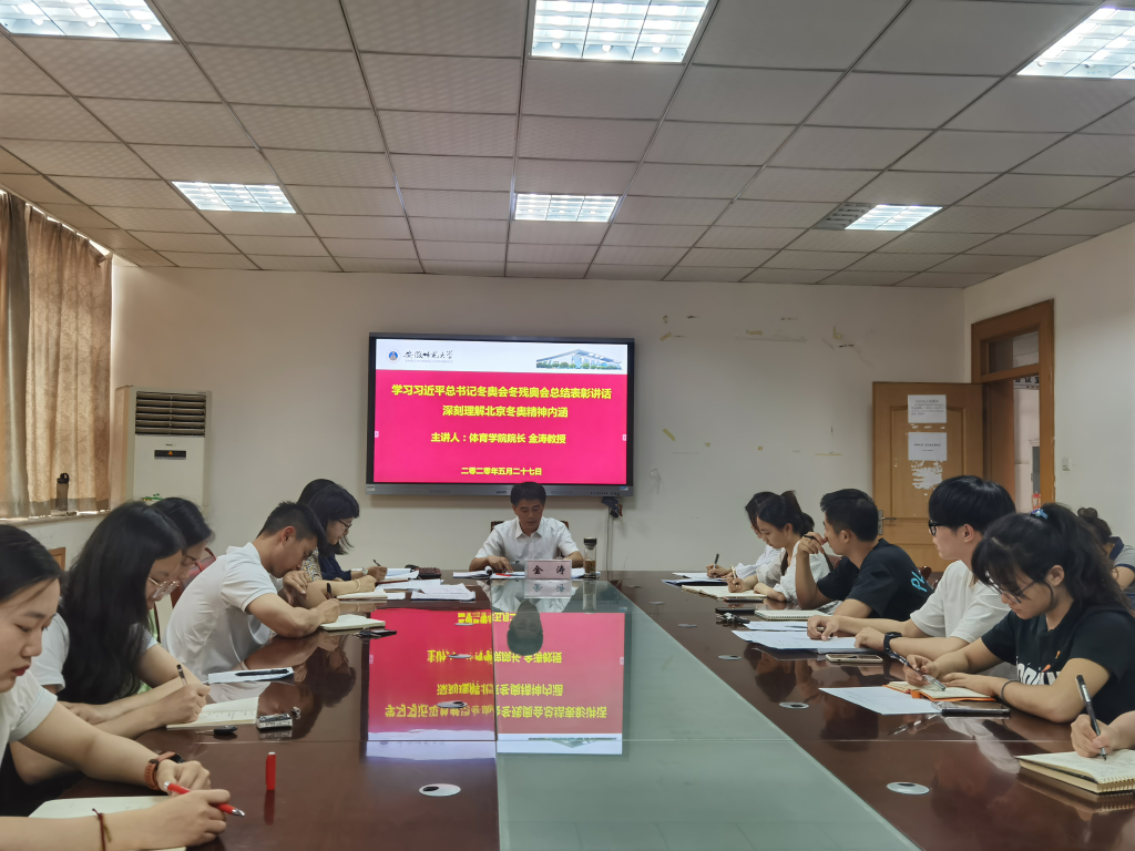 金涛全面分析了新时代我国体育发展形势与面临的国内外环境变化及挑战,希望研究生同学们进一步关注如冬奥遗产与国家认同、冬奥促进乡村振兴、冰雪运动公共服务等体育领域最新研究方向、动态、热点与成果。他强调,新时代青年同志们要牢记总书记的嘱托,牢记成功来源于奋斗,只有不断地奋斗才能创造更美好的未来。