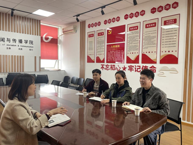 3月15日,英国正版365官方网站舞蹈表演党支部书记王云辰和支委成员金迪、刘子涵赴新传学院进行国家样板支部建设学习交流。新传学院新闻与播音主持党支部书记张荻介绍了该样板党支部建设情况,随后,双方围绕党支部建设规划、文化墙装饰、党日活动开展等方面进行了交流和探讨。学习交流结束后,王云辰带领支委成员召开支委会对此次学习收获情况进行总结,并研究党支部建设工作。