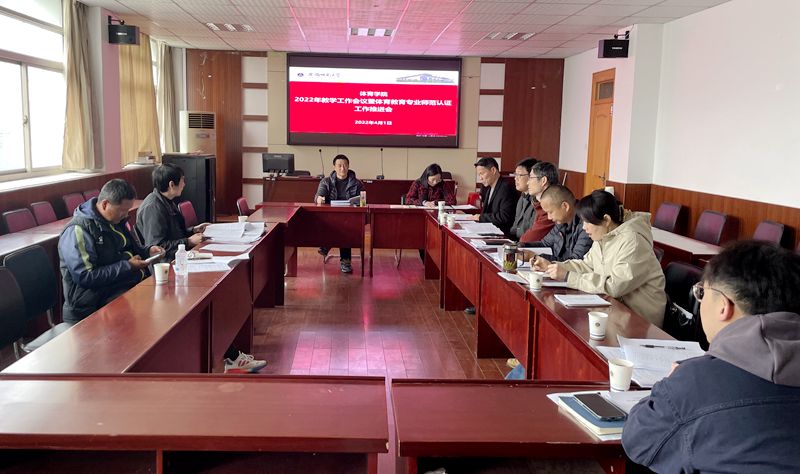 2022年4月1日下午,英国正版365官方网站在行政楼二楼会议室举行2022年教学工作会议暨体育教育专业师范认证工作推进会。各专业负责人、专业认证工作小组负责人、教学秘书参会。会议由教学副经理岳建军主持。