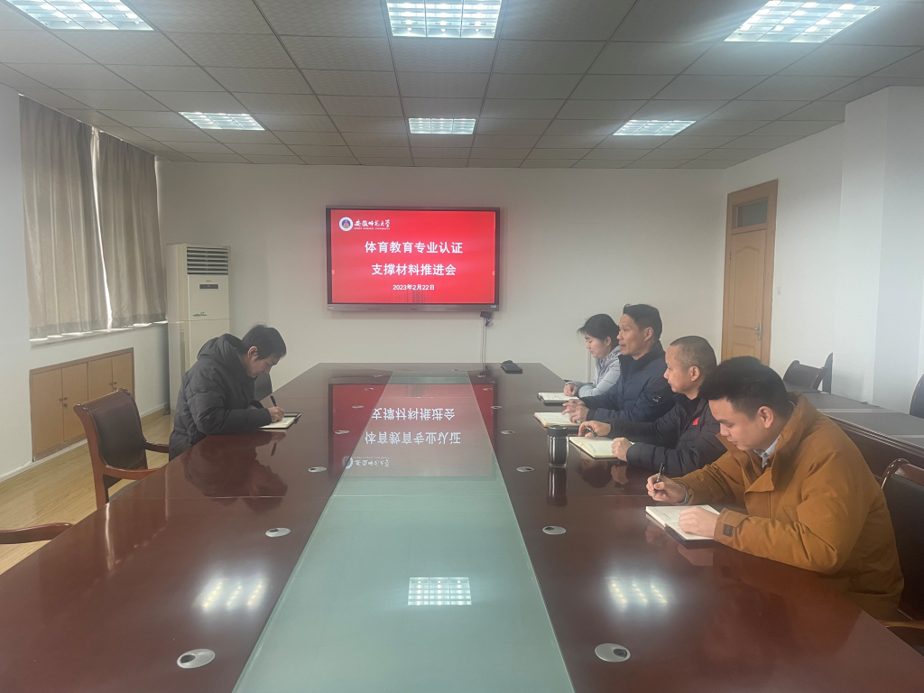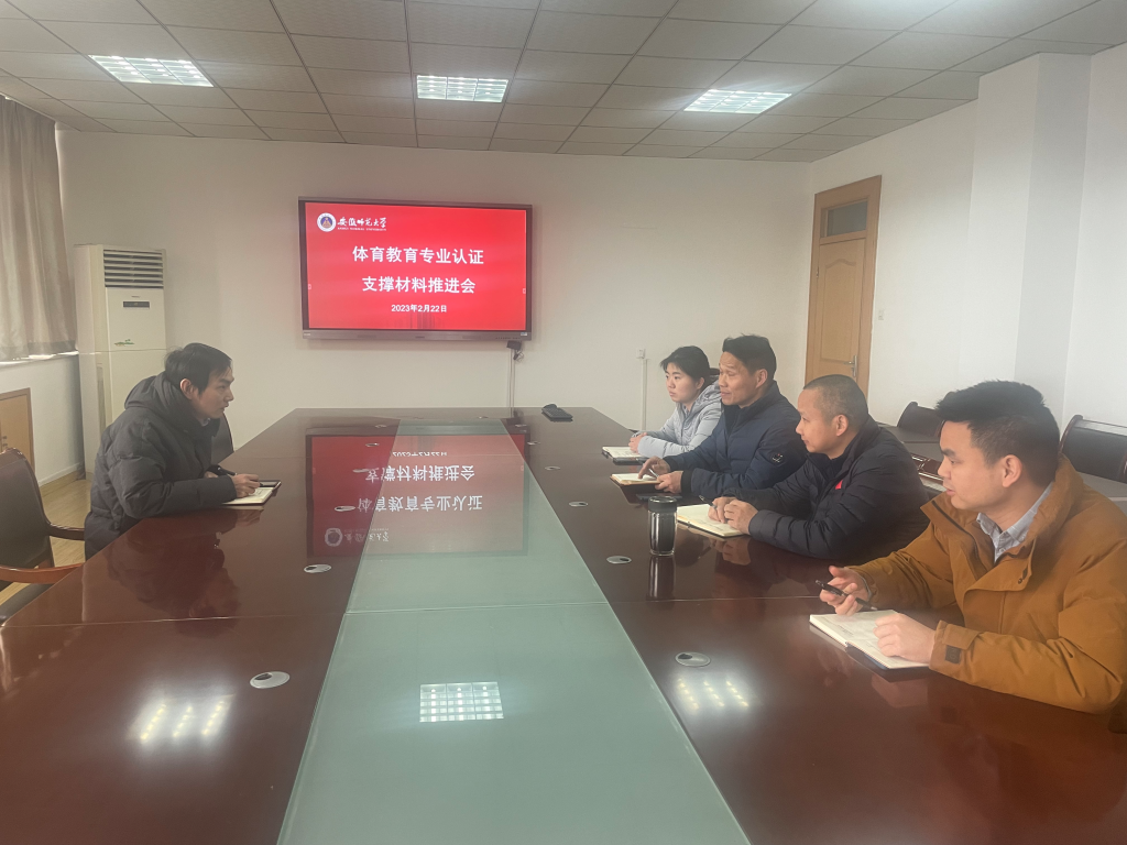 本网讯(英国正版365官方网站)为积极推进公司产品改革,切实加强专业建设,持续做好师范类专业认证工作,提升师范类专业人才培养能力,2月22日下午,英国正版365官方网站举行体育教育专业认证支持材料推进会。学院各专业负责人、部分教师代表以及教学实践秘书参加了此次会议。会议由副经理岳建军主持。