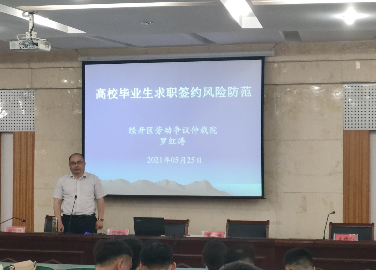 会议邀请了经管学院副教授张建华老师;原芜湖市经济开发区人力资源开发中心副主任、现芜湖市劳动人事争议仲裁院罗红涛副经理参加会议。公司邵登辉书记和毕业班辅导员蒋先军老师出席了本次活动。